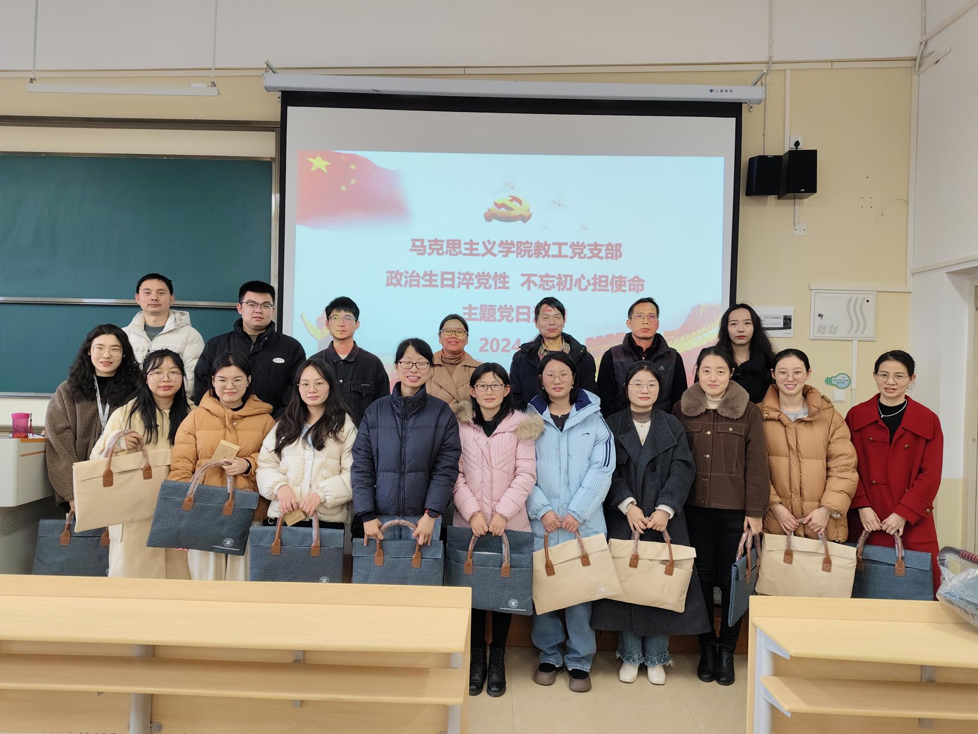 12月13日下午,马克思主义学院教工党支部在C514教室开展了“政治生日淬党性 不忘初心担使命”主题党日活动,为7-12月入党党员集体过“政治生日”,活动由党支部副书记剌啸媛老师主持。