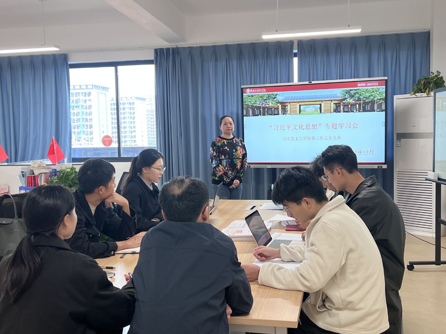 11月17日,马克思主义学院第二教工党支部开展了习近平文化思想和习近平总书记关于教育的重要论述专题学习,旨在将党的创新理论融入思政课教学与育人全过程,进一步提升党员教师的党性修养、理论水平和育人能力。