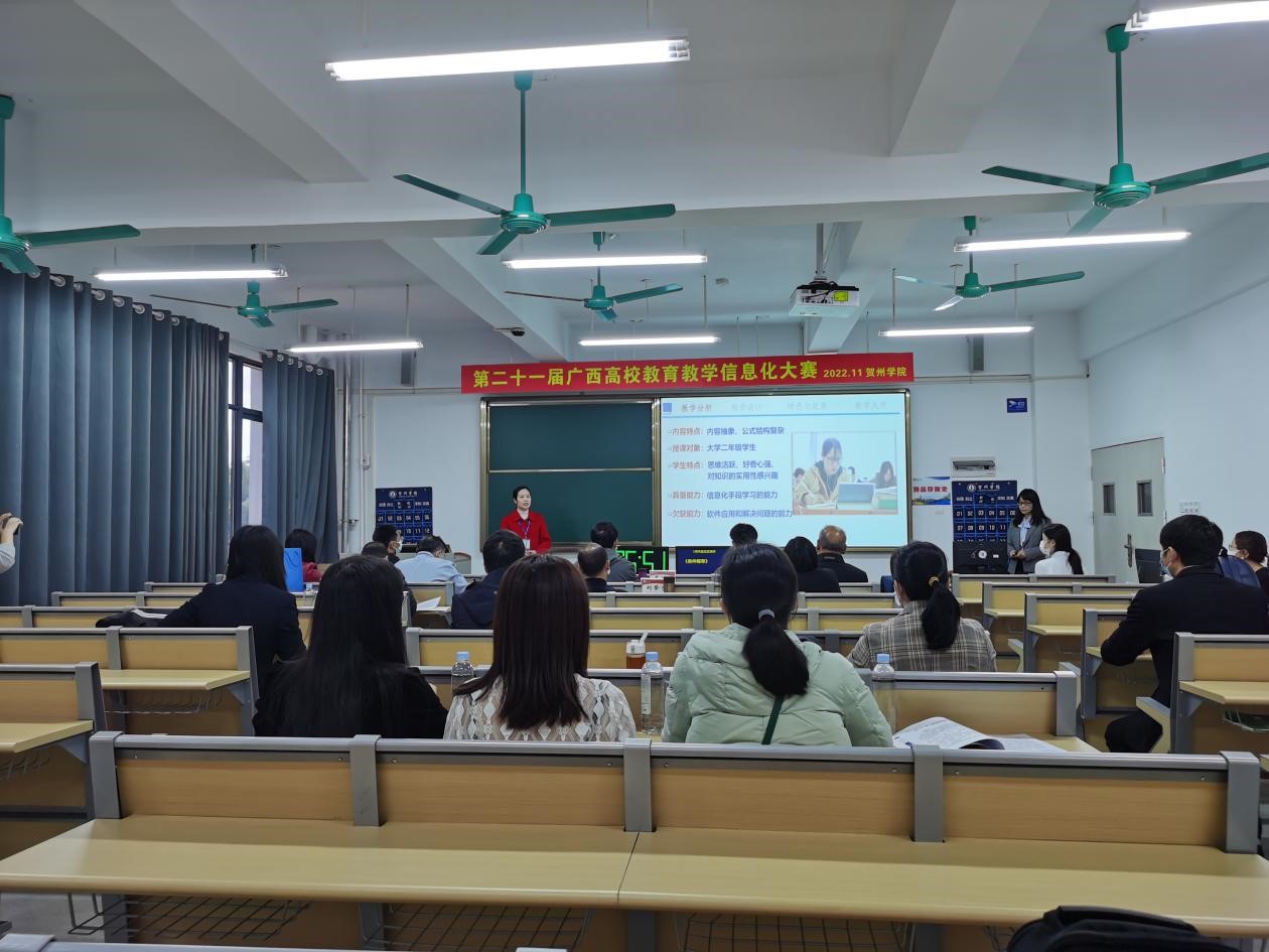 11月19日至20日,由自治区教育厅主办、广西高等教育学会高校教育技术专业委员会承办、贺州学院协办的第二十一届广西高校教育教学信息化大赛在贺州学院西校区举行。数学教研部直属党支部副书记韦爱举携支部焦萌倩、覃雪清、张爱老师观摩了此次比赛。