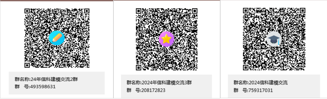 2、培训具体安排见2024信科建模相关交流群(注意:各位同学以姓名+学号形式进群,每个同学加一个群即可,群内通知均一致!!!)