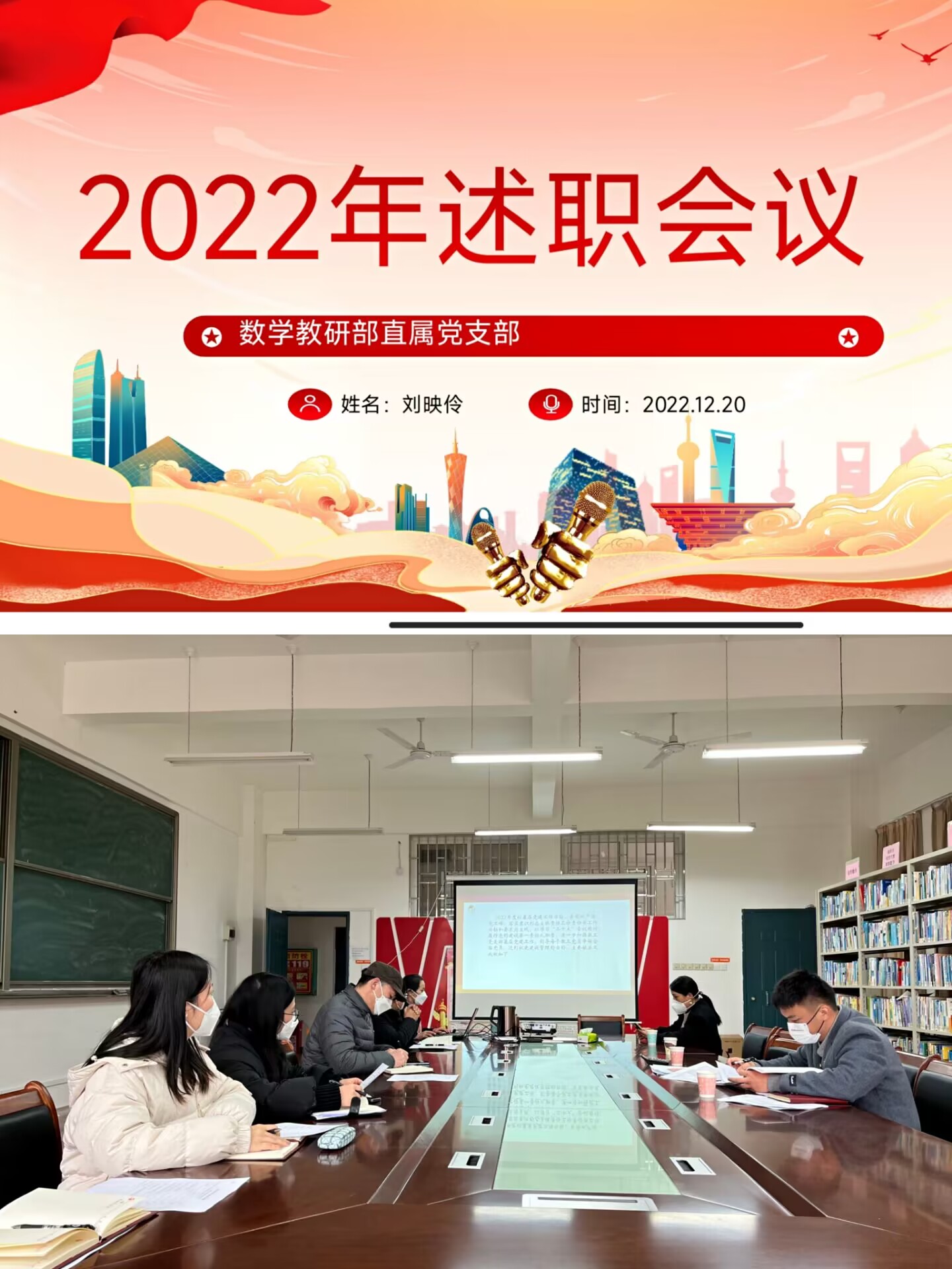 为进一步促进支部党建工作,12月20日下午,数学教研部直属党支部在21213会议室开展2022年度支部书记述职会议。学校党群事务部王南萍部长等人列席会议,数学教研部直属党支部全体党员参加。