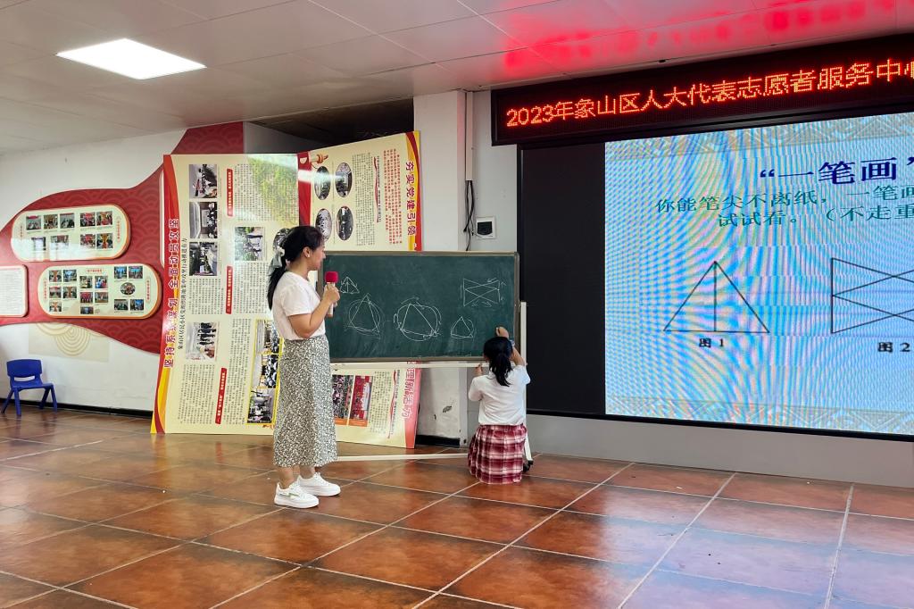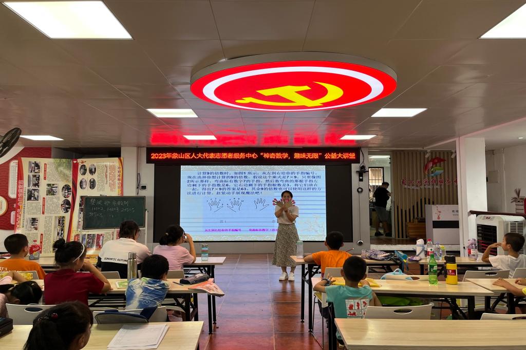 为进一步推进人才培养、社会实践与城市发展相结合,8月18日下午15时,数学教研部教工党支部联合象山区党群服务中心开展了“走进暑期公益课堂——神奇数学,趣味无限”活动,这是7月7日我校与象山区共建“校地融合·筑梦青春”大学生社会实践基地以来的第一次公益活动,实现打造双向奔赴、互为受益的“青春共同体”的目标。数学教研部教工党支部刘映伶书记为象山区的小朋友们带来了一堂别开生面的公益课堂,结合趣味活动,寓教于乐、融学于趣、化教于心,传授数学启蒙知识。