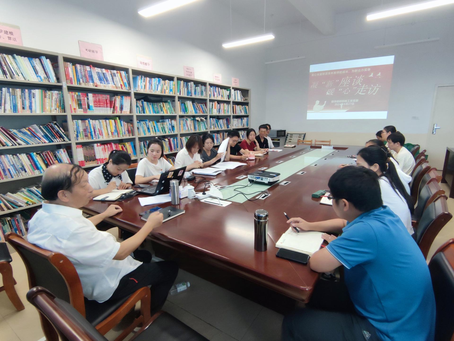 9月27日中午,数学教研部深入推进“我为群众办实事”实践活动,坚持以学促干,积极为群众办实事解难题,开展“凝‘新’座谈·暖‘心’走访”的党日活动,认真研究群众诉求,围绕新教职工培养、校园文化、服务保障等问题办实事真办事,积极回应新教职工关心关切,切实解决师生“急难愁盼”,力争提高师生满意度。