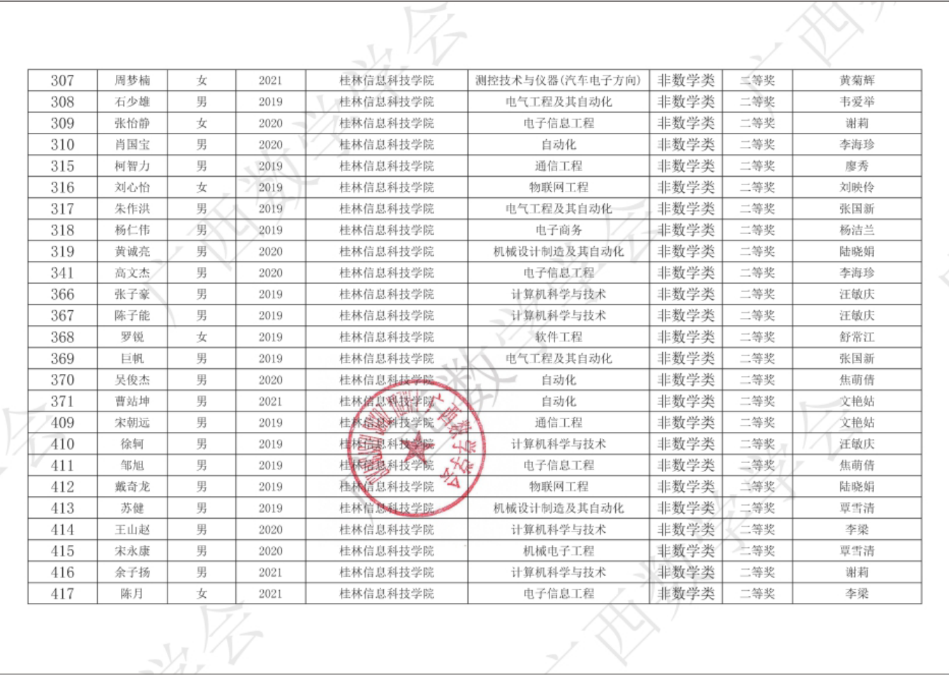 单位名称:桂林信息科技学院基础教研部