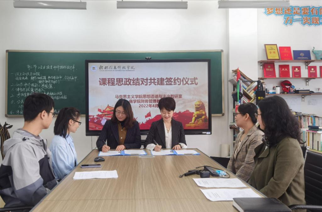为深入贯彻教育部及我校关于开展“三全育人”相关工作的要求,秉持以共建互助促提升发展的结对原则,4月21日上午,商学院财务管理教研室与马克思主义学院思想道德与法治教研室举行了“课程思政”结对共建揭牌和签约仪式,并就共建内容及共建方式进行了深入交流。商学院严宗光院长、马克思主义学院李琳玲副院长携双方课程思政教学团队负责人、教学团队骨干参加会议,会议由财务管理教研室主任李彦庆主持。