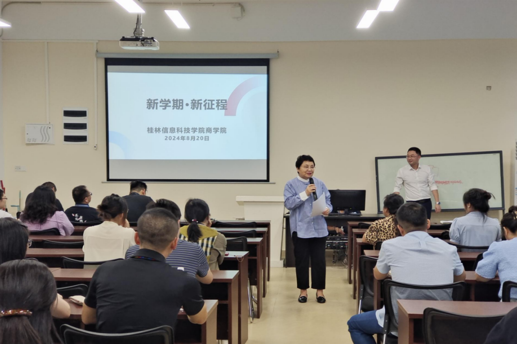 2024年8月20日,伴随新学期拉开帷幕,桂林信息科技学院商学院于学院会议室举行新学期教师会议。本次会议紧紧围绕商学院所面临的新挑战与新机遇,着重对教学改革、课程设置、学生管理以及未来发展规划等关键议题展开深入探讨。