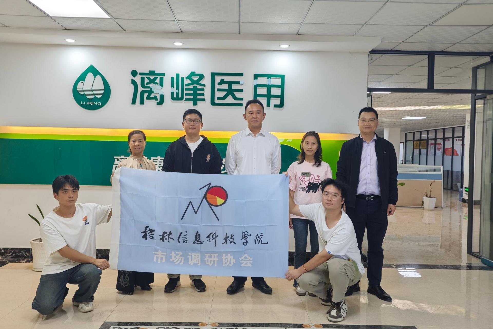 10月31日,我校市场调研协会在协会指导老师王兰辉的带领下,赴桂林漓峰医药用品有限公司参观交流。此次活动旨在增进学生对医药行业的了解,同时促进协会与企业之间的合作与交流。王老师一行受到了公司董事长、总经理和销售部经理的热情接待。