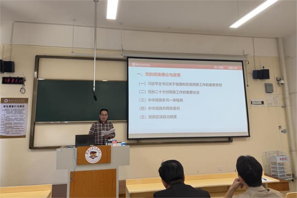 为深入学习贯彻国家民族宗教工作相关政策法规,提升新入职教职工对民族宗教政策法规的理解与执行能力。10月24日,商学院在敏思楼D210教室组织开展民族宗教政策法律法规教育专题学习,2024年11月1日后入职的教职工参加学习。