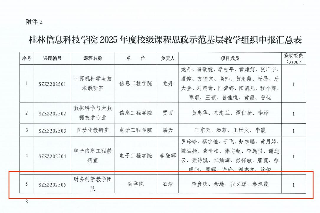 11月18日,我校公布2025年度校级课程思政示范基层教学组织名单,商学院第一教工党支部牵头的“财务创新教学团队”成功入选。该成果是支部深化“党建+课程思政”融合、推动基层党组织在教学改革中发挥实质作用的体现。