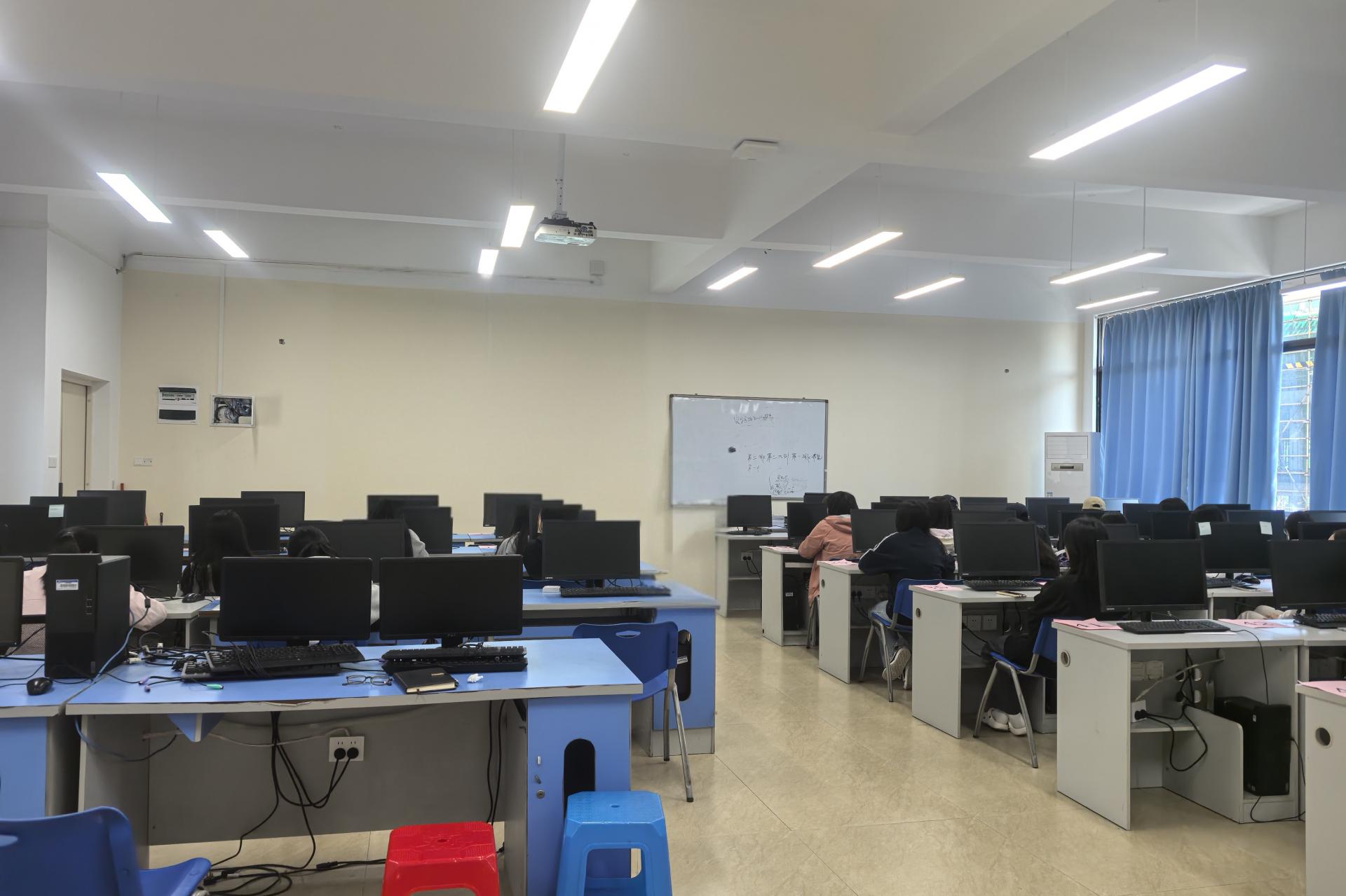 智能化自习室预约程序由学院学生团队自主开发,可通过学院微信公众号端口进行预约,公共机房提供了丰富、便捷的课内外上机教学资源,学生可以结合课上所学知识进行上机实践操作,还可以在此进行网上学习、查阅资料、网上交作业等。自习室开放时间为每天9:00-21:00,学生可以根据自己的时间安排选择合适的时段进行预约使用。为加强对智能化自习室的管理,学院还申请配备了勤工助学岗专人进行管理和维护,定期进行安全检查,确保各项安全设施完好有效。