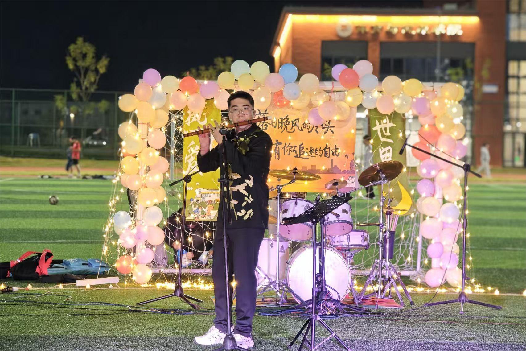 11月26日,商学院在学校足球场举办“商载初心乐扬国韵”草坪音乐节。活动通过艺术展演形式,搭建传统文化与校园生活交融的展示平台,丰富师生文化生活。