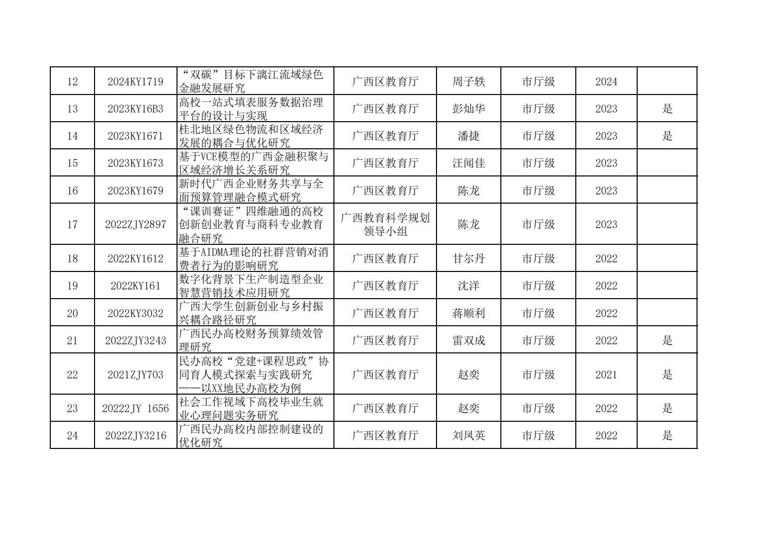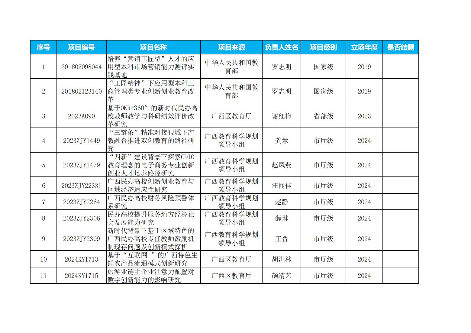 商学院近五年科研项目