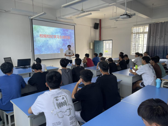 在班会上,新生辅导员容贤钦老师首先用一则寓言引出俗语:“没有规矩,不成方圆,”并着重强调了遵守规矩的重要意义。校规校纪,是一种为了维持正常的教学秩序,使学生在德、智、体、美、劳各方面获得健康的发展而提出的行为准则和人际交往的基本要求,它不仅约束着学生的言行,还引导着学生的思想向正确的方向发展。要求学生要主动了解和熟悉校规校纪的内容和基本要求,自觉地用学校的规章制度来约束、规范自己的行为,养成良好的习惯。接着,容老师用案例结合理论的方式,组织新生完整地学习了《学生手册》(2021年9月)的全部内容。最后,容老师跟新生进行了交流讨论。
