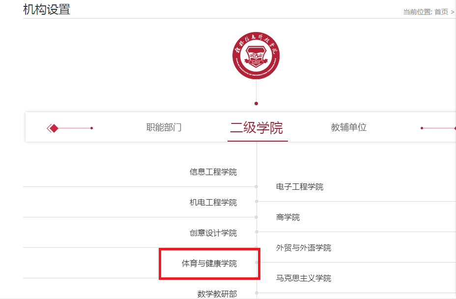 第二步:机构设置 → 二级学院 → 体育与健康学院