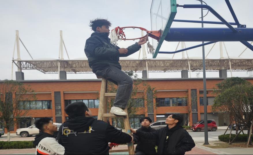雷锋精神是中华民族宝贵的精神财富,新时代的青年学子要深刻领会雷锋精神的时代内涵,将其融入日常学习和生活中,用实际行动践行雷锋精神,为社会贡献青春力量。在篮球场,志愿者们化身“篮网守护者”,运用运动器材维护专业知识,分组完成旧网拆除、高度校准、新网安装全流程。