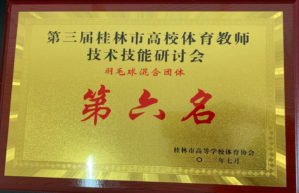 本届体育教师技术技能研讨会分为三人制篮球、气排球、羽毛球、乒乓球、网球5个项目技术研讨交流,共有9所桂林高校代表团参赛。我校体育与健康学院教师分别参加了三人制篮球、气排球、羽毛球3个项目的交流赛,并获得三人制篮球第三名、气排球第六名和羽毛球第六名的佳绩,教师们赛中团结协作,奋力争锋,向其他兄弟院校展示了良好的精神面貌和技战术水平。【体育与健康学院 刘卓】
