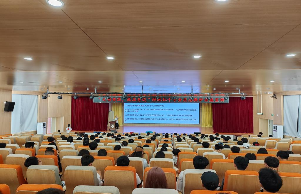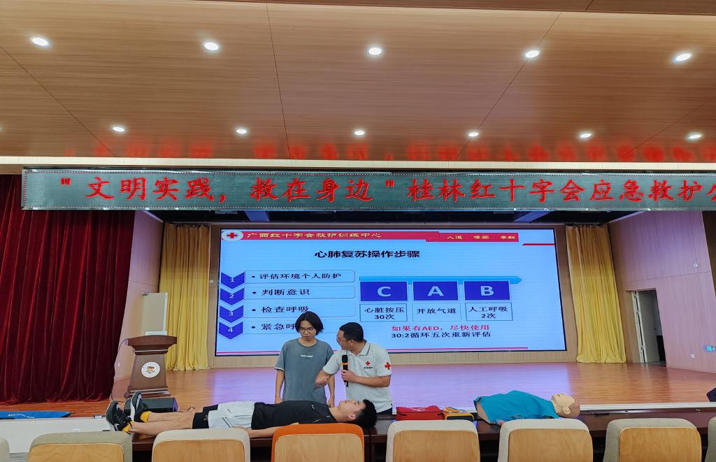 5月25日上午,在F107报告厅,我院与桂林市红十字工作服务中心联合开展“文明实践,救在身边”应急救护公益宣讲活动。