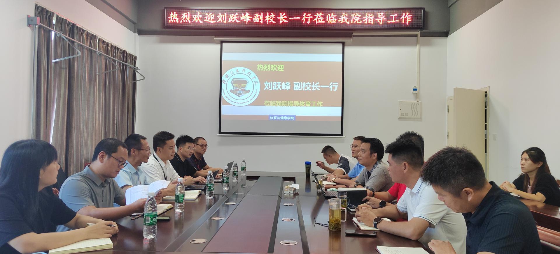 9月4日上午,学校副校长刘跃峰,校企合作处、就业指导服务中心主任李晓健,招生办公室副主任(主持工作)黄云鹏等一行到体育与健康学院开展调研工作,会议由体育与健康学院院长周勇主持,体育与健康学院党总支书记、副院长关永康、各教研室主任在行健楼会议室参加了此次会议。