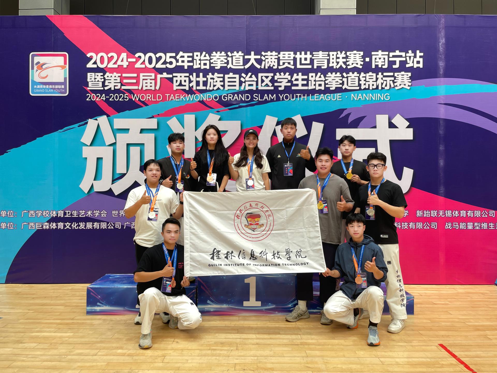 近日,由广西学校体育卫生艺术学会主办,广西民族大学承办的第三届广西壮族自治区学生跆拳道锦标赛在广西民族大学思源湖校区圆满收官。我校体育与健康学院钟依岑、李炜、薛伟佳三位老师率领我校跆拳道代表队参加此次锦标赛并获得2金4银3铜的优异成绩。