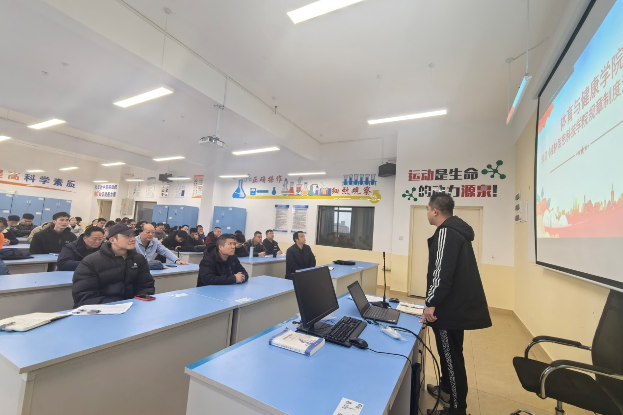 为落实学校规章制度汇编,3月13日上午,体育与健康学院在知行楼A212召开学习《桂林信息科技学院规章制度汇编》动员会,学院领导班子以及全体教职工参加,会议由学院党总支书记关永康主持。
