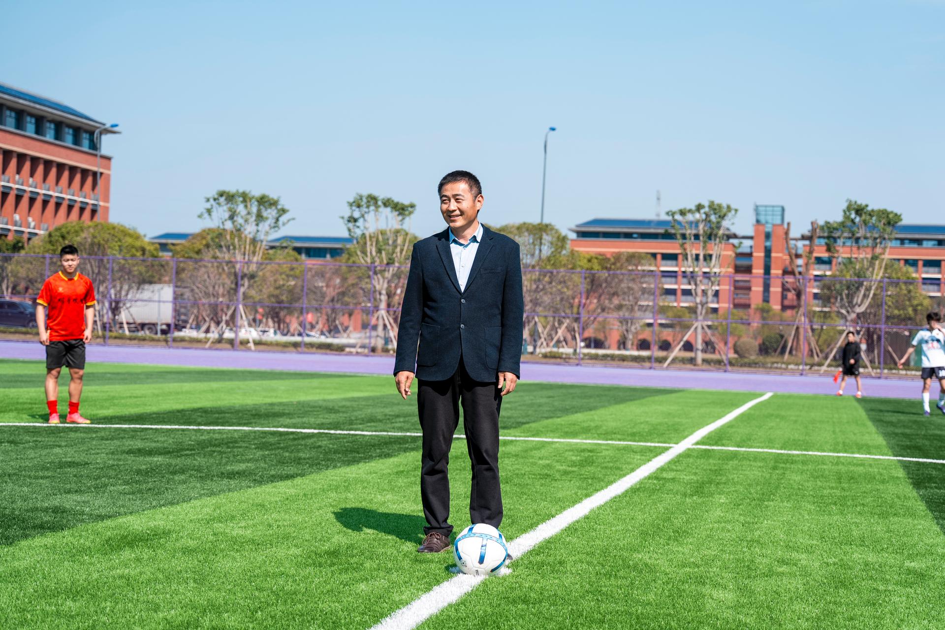 党委李飞副书记为足球友谊赛开球