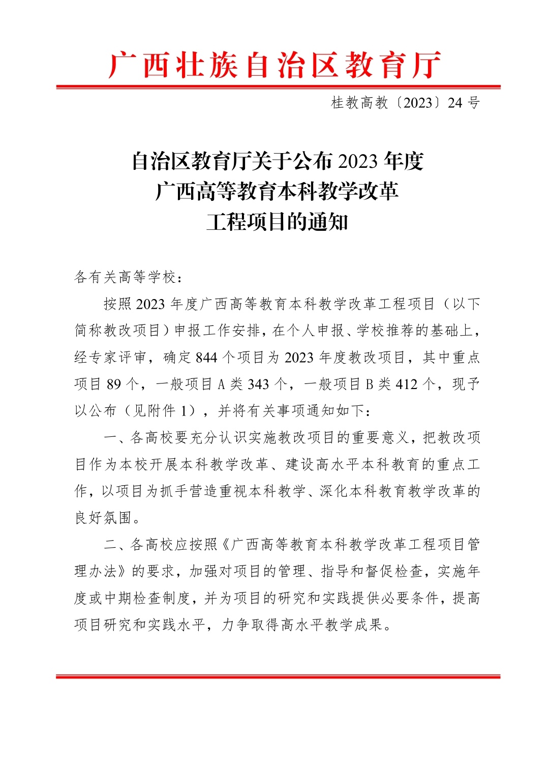2024年度广西高等教育本科教学改革工程A类项目