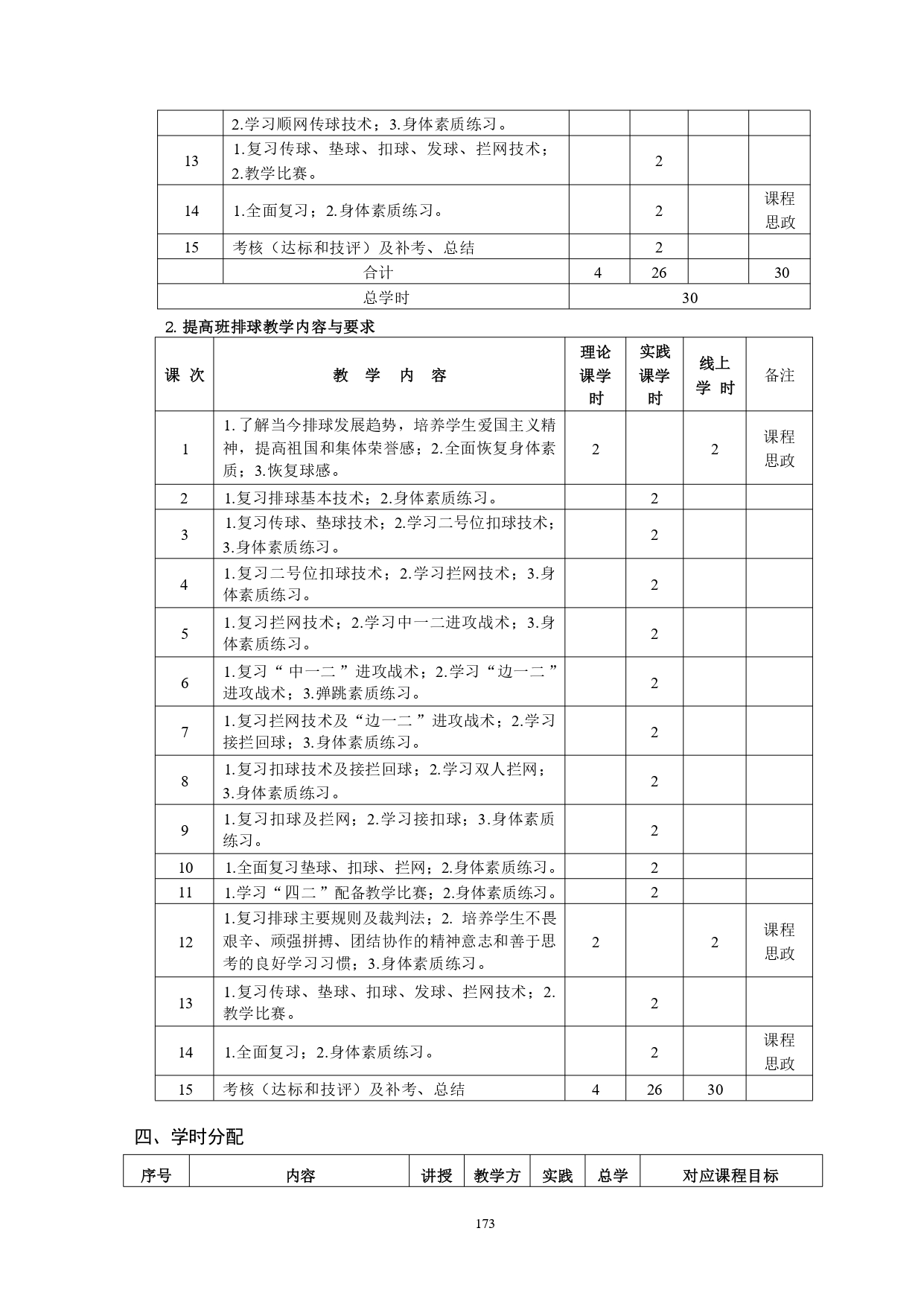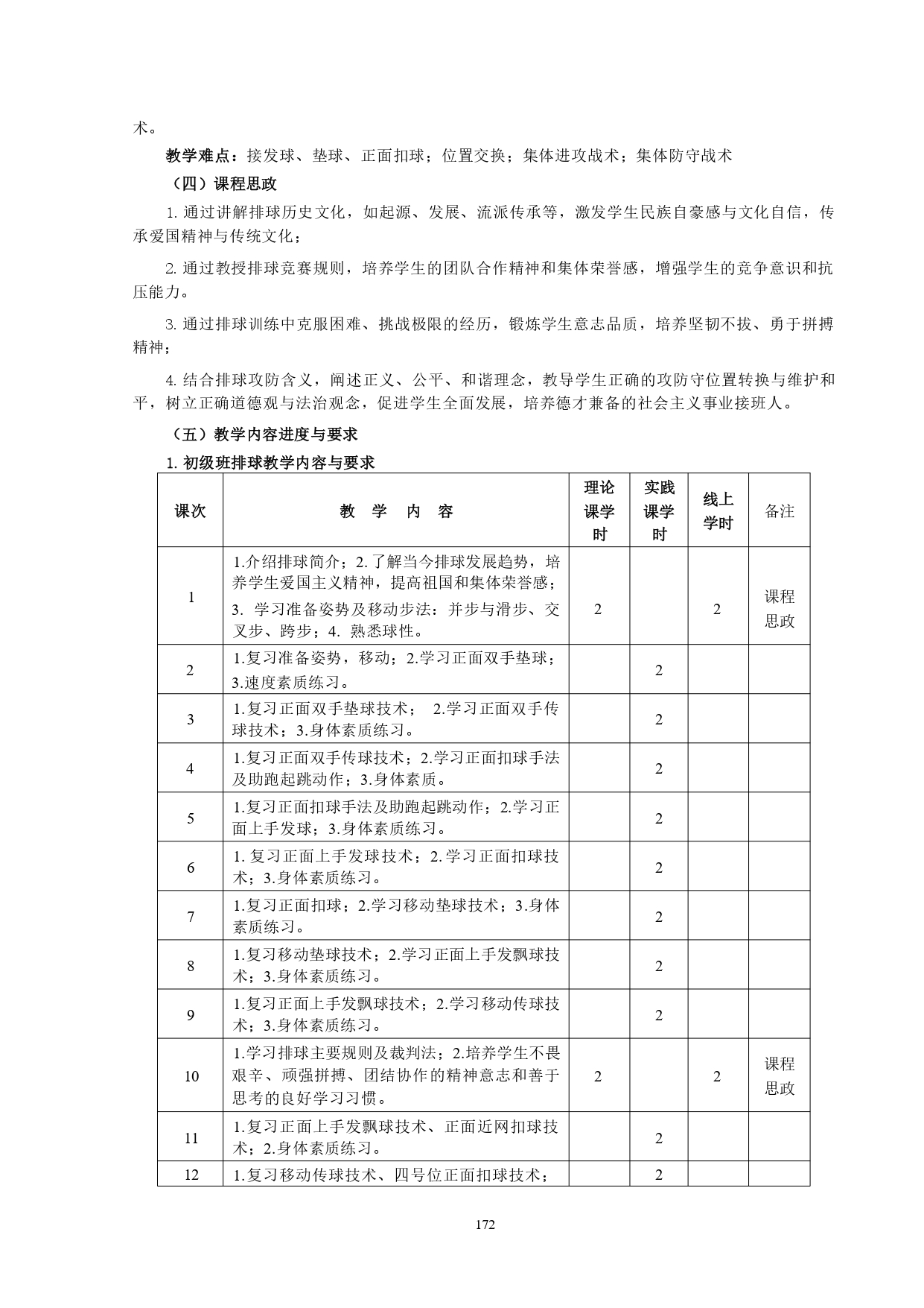 排球教学大纲