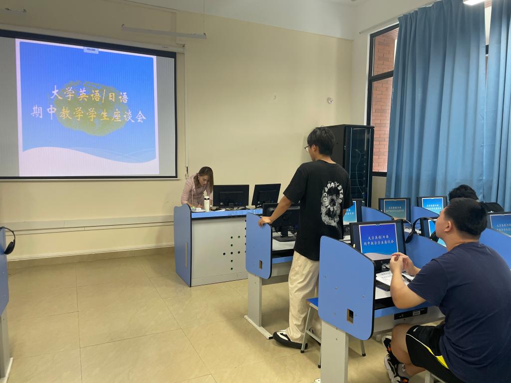 为更全面的了解和掌握我校非英语专业学生本学期大学外语的学习教学情况,进一步提高大学外语教学质量,5月9日,外贸与外语学院大学英语第一、第二教研室在F111教室召开了大学英语、大学日语课程期中学生座谈会以及线上教师座谈会。大学英语第一、第二教研室教师代表、各任课教师以及各学院2022级、2023级学生代表参会。