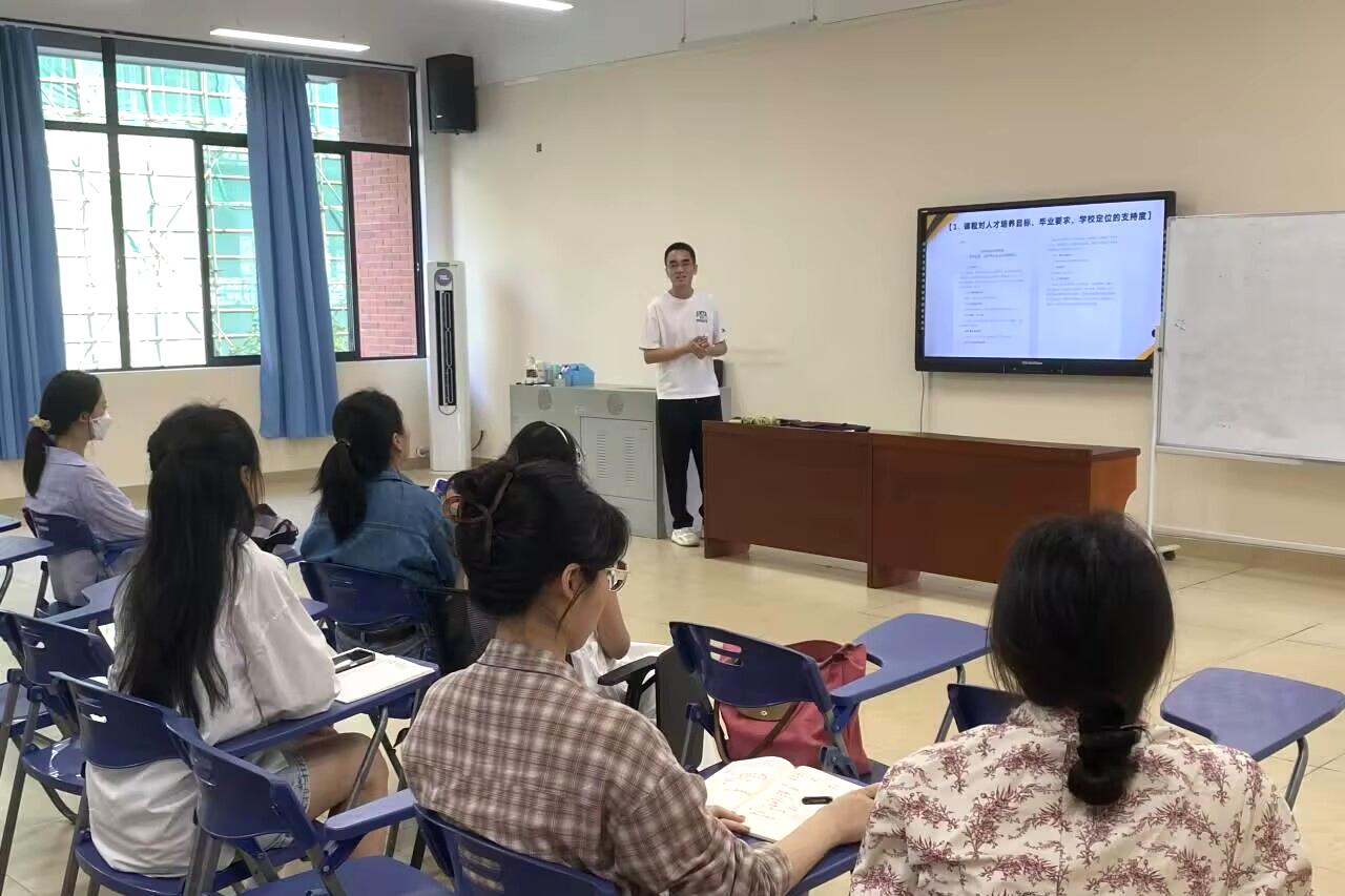 在本次活动中,专业带头人袁斌业教授就商务英语专业建设情况与特色进行了分享,冯文雄和闵世琦两位老师先后做了说课分享。袁斌业教授就商务英语专业的建设历程、建设成果、专业特色及持续改进做了全面的分享。冯文雄老师介绍了《商务英语翻译》课程的培养目标、课程定位、课程实施情况、教学方法与手段的创新等。冯老师重点介绍了该课程如何贯彻OBE(Object-Based Education,成果导向教育)教学理念,如组织学生前往桂林景区进行翻译现状的调研。闵世琦老师从课程基本情况、课程改革与创新、课程教学反思三个方面介绍了《商务英语》课程。其中在促进课程的改革与创新方面,闵老师采用了Jigsaw教学法,以提高学生小组合作的学习效果。在场教师认真学习了本次教研室的“六说”内容,并就两位老师的课程设计亮点和现存问题展开讨论,提出意见和建议。
