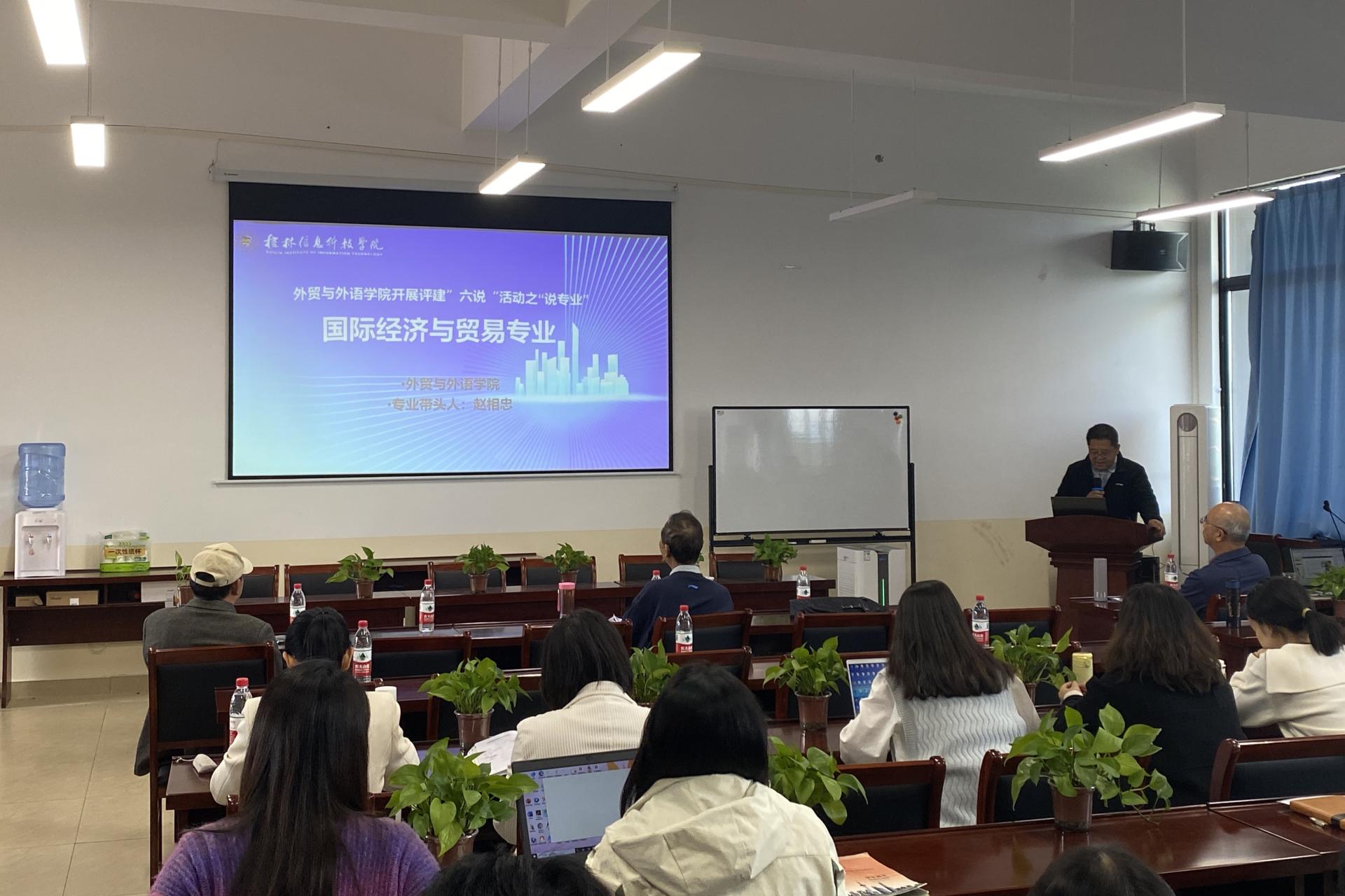 活动中,国际经济与贸易专业带头人赵相忠教授、英语(对外汉语)专业带头人韦储学教授、商务英语专业带头人袁斌业教授,国际商务专业教研室主任高宇以及酒店管理专业教研室主任黄艳,分别进行“说专业”。各专业带头人以先进的理念为先导,准确把握专业定位,凝练专业特色,统览课程体系,对各自的专业作了精彩的阐述。