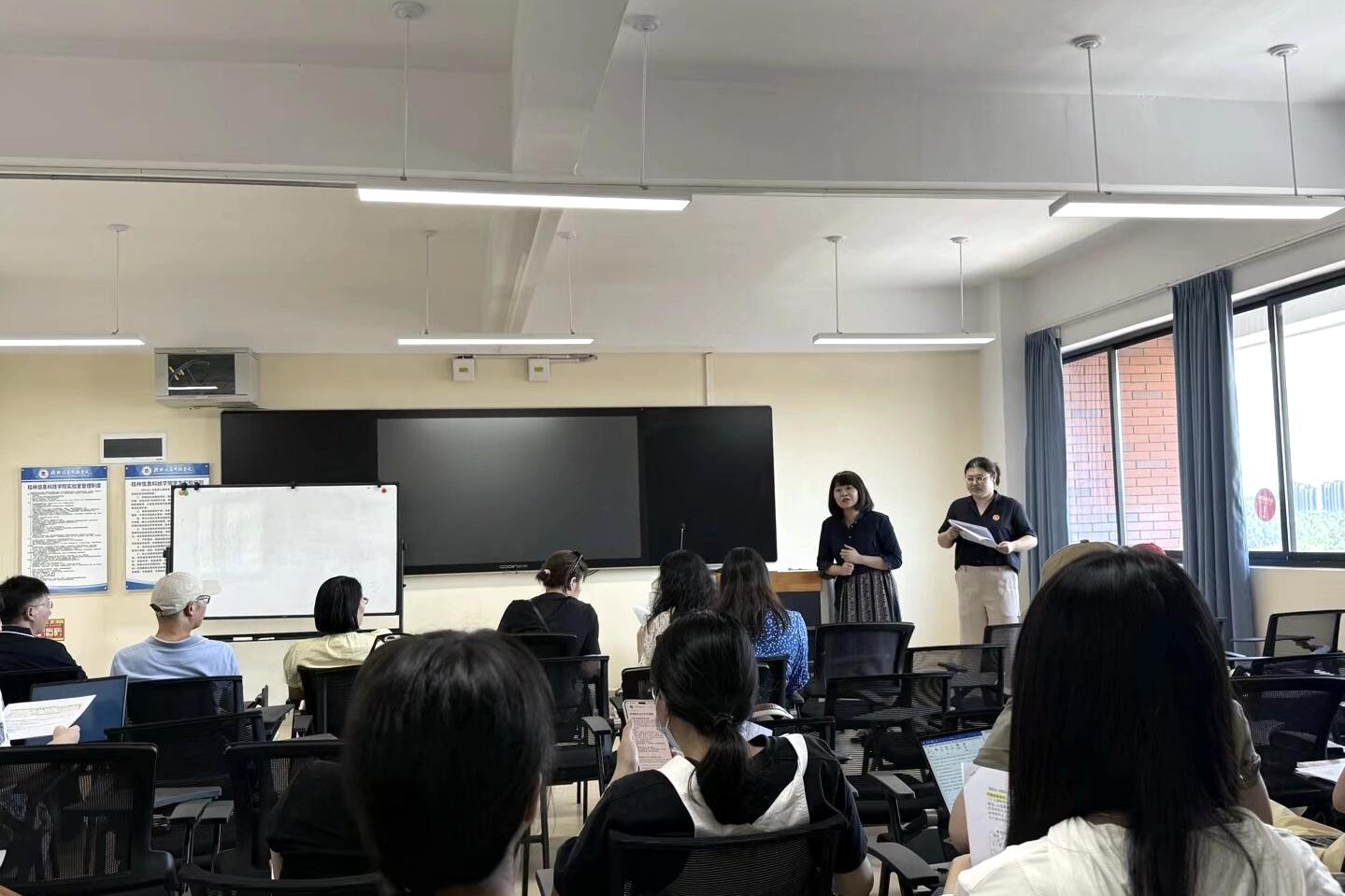 会上,蔡沐曦老师详细讲解新学期大学外语课程的教学安排,包括教学内容、教学进度、课程考核、教学材料填写以及教学资源的整合与应用,强调在教学过程中要注重学生英语应用能力的培养,践行OBE教学理念,加强课堂教学秩序的管理,提升课程教学质量和思政育人实效。