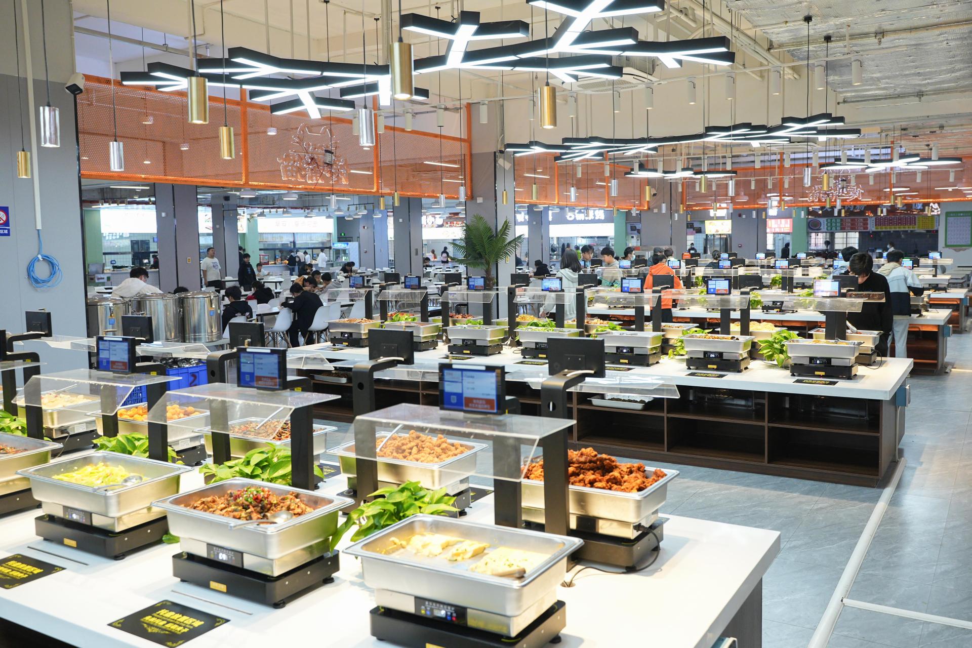 食堂除了传统大众的饭菜,还有自助餐厅、品牌连锁、特色美食、地方菜系、早餐夜宵、汉堡披萨、炸鸡烤串、香辣干锅、粉面粥品、甜点饮品等等。满足不同地域、不同层次消费的需求,为师生提供均衡营养的饮食结构。
