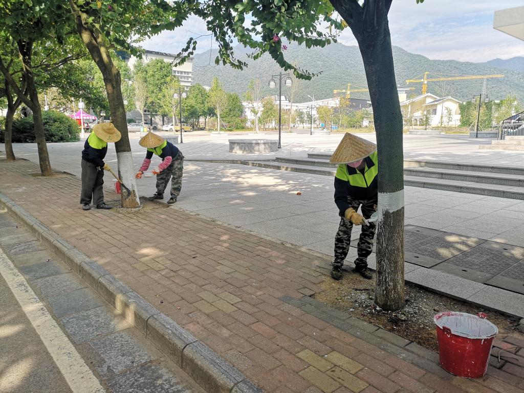 “刷白”是每年初冬时树木养护管理的一项重要内容,可有效防止冬季绿化树木的冻害,减少越冬虫源,提高绿化树木的抗病能力,减轻寒风直接侵害植株,确保树木安全过冬。