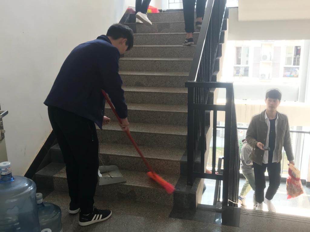 本次活动以清扫公寓公共区域卫生为主,在王正老师的带领下大家分工合作,将楼道、楼梯扶手、消防栓、宣传板、卫生死角及公寓花园等区域进行全面清洁,大家积极主动、辛勤工作,力求公寓焕然一新,同时得到学生们的好评。
