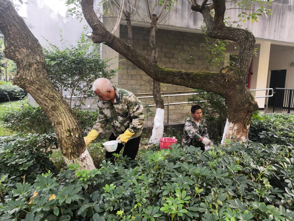 为保证涂白工作质量,绿化师傅们精心对涂白剂进行搅拌、配比,并统一涂白高度、涂层厚度均匀,达到美观一致的效果,努力做到不浪费浆料,涂白后的树木成为校园冬季一道独特亮丽的风景线。