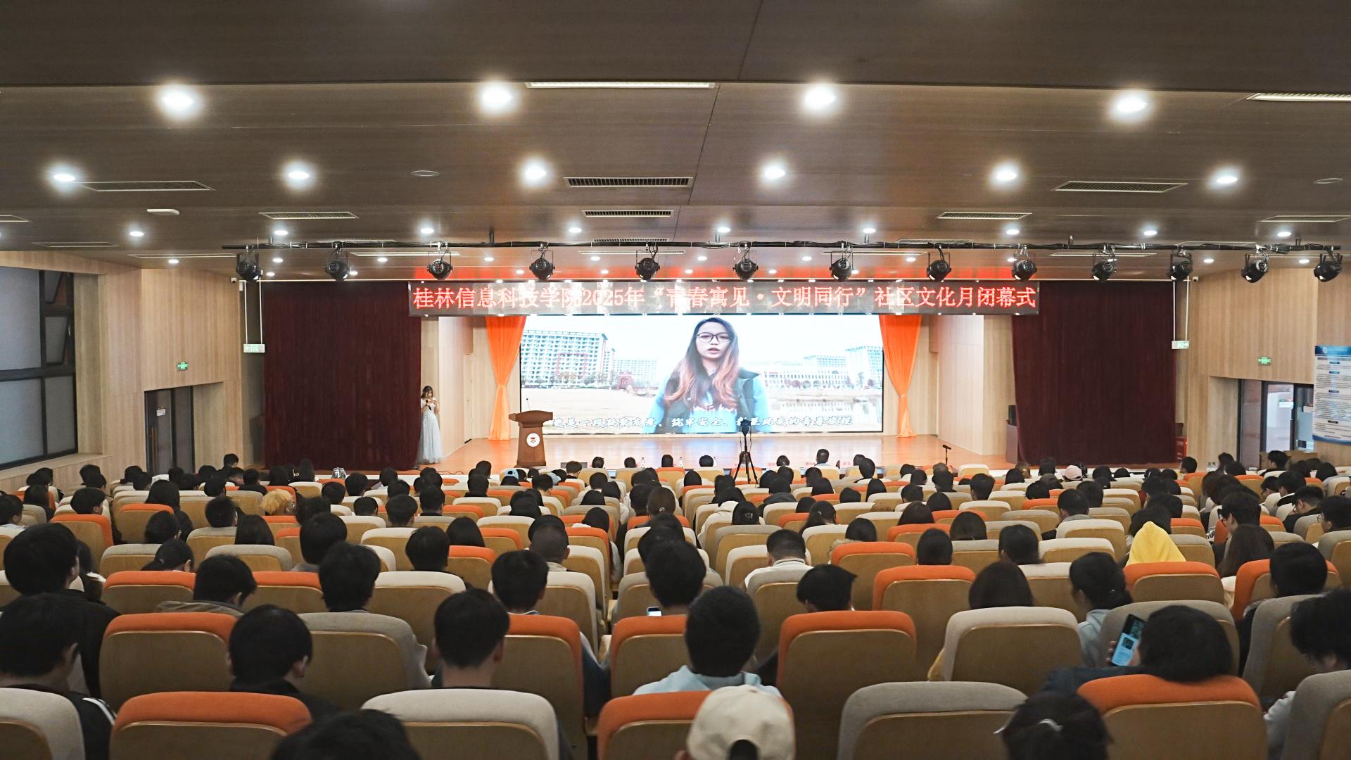 近日,桂林信息科技学院2025年“青春寓见·文明同行”社区文化月闭幕式在学校G105报告厅隆重举行。学校学生发展与服务中心、素质素养中心、后勤服务处等部门的领导、老师代表,以及各社区生活老师与数百名学生齐聚一堂,共同见证本次社区文化建设的成果。