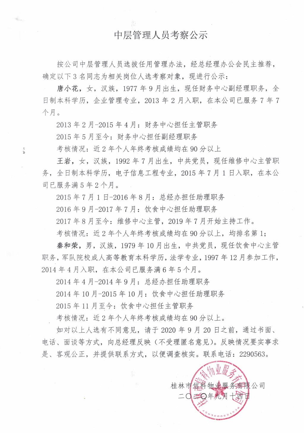 中层管理人员考察公示