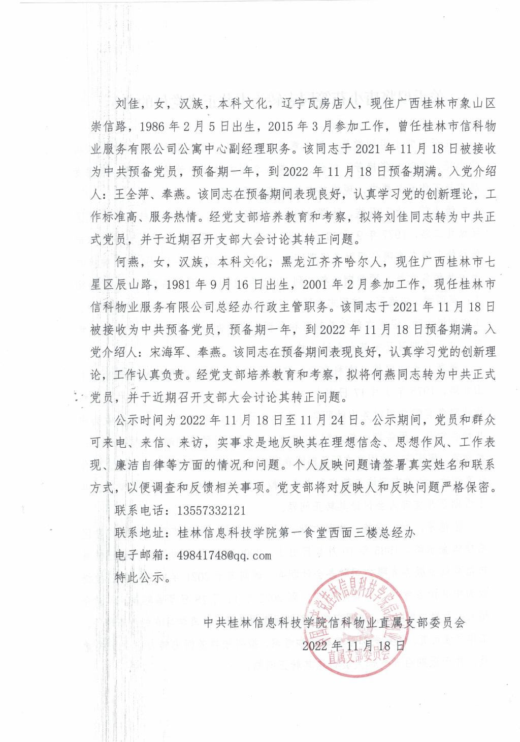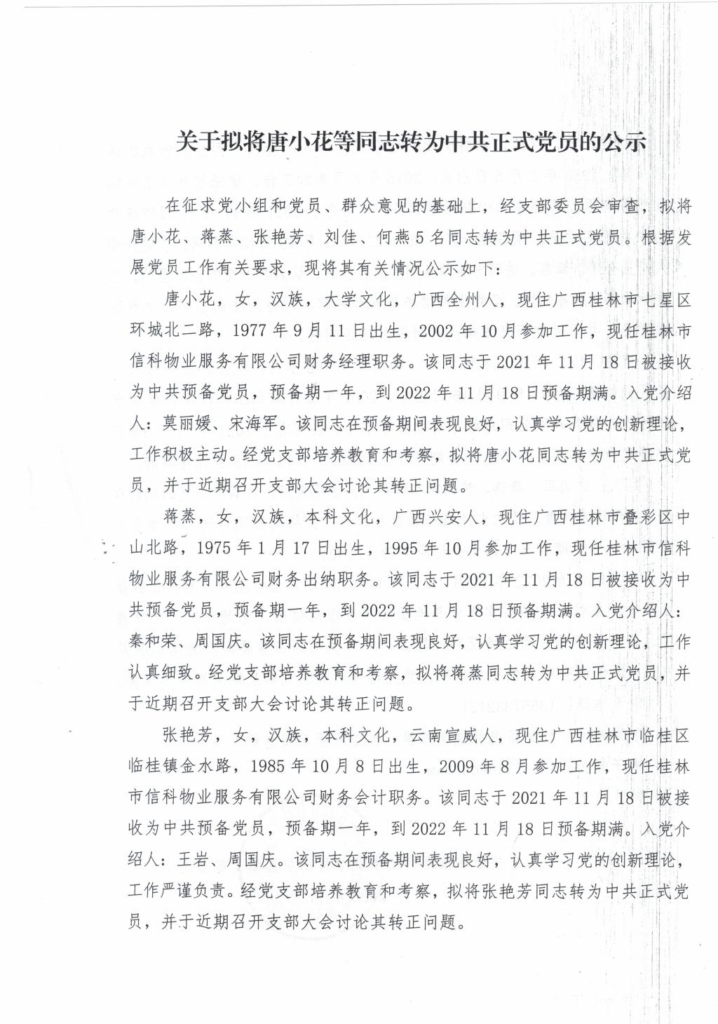 关于拟将唐小花等同志转为中共正式党员的公示