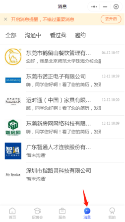四、进入个人消息模块,即时查收企业投递及面试邀请。