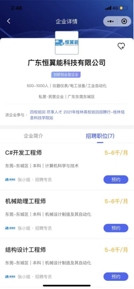 三、进入招聘会场,招聘会开始后,学生即可在线投递简历,与企业HR在线直聊及视频面试。