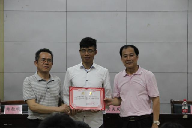 黄美发校长、蒋鑫、李长俊主任左至右