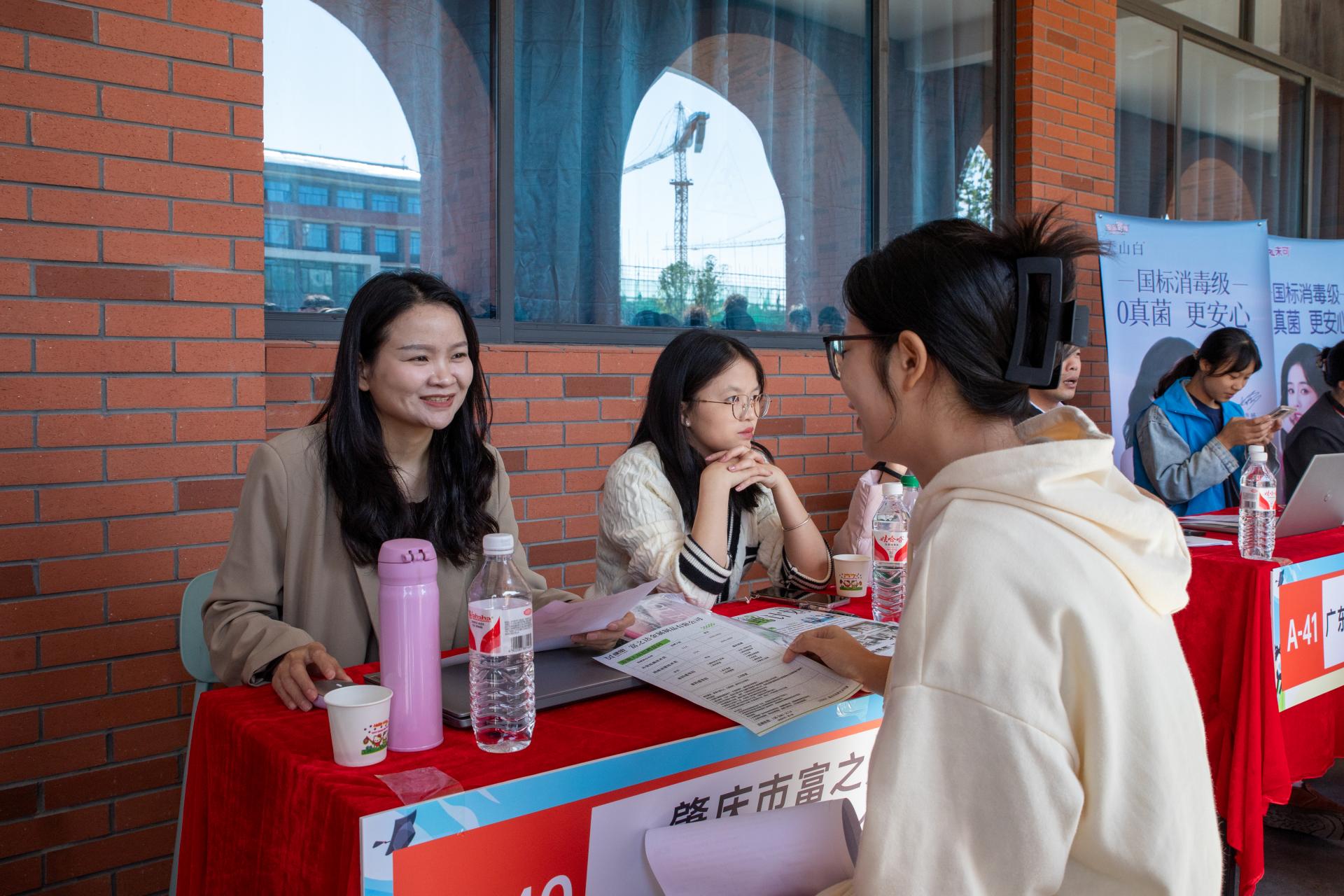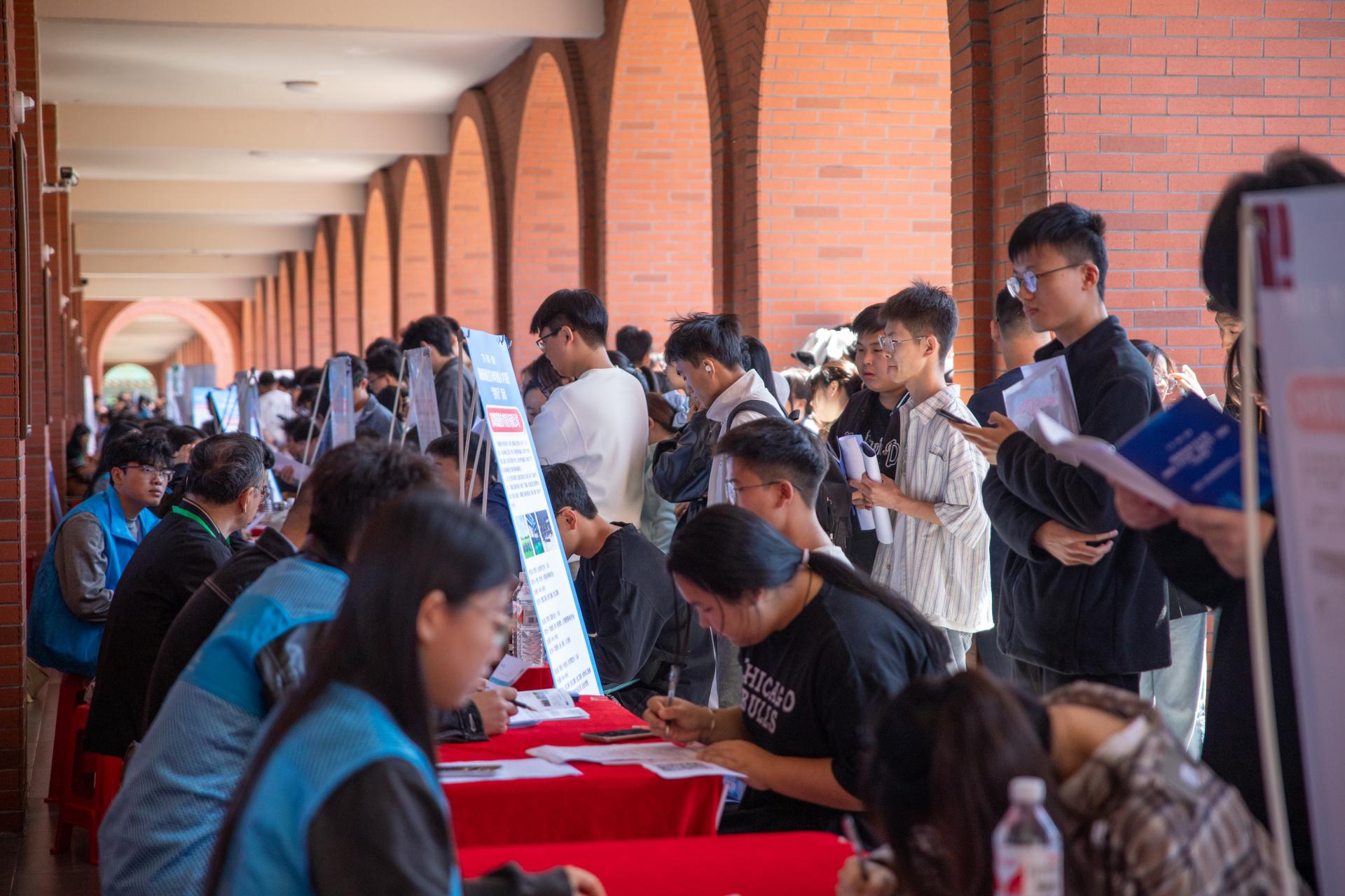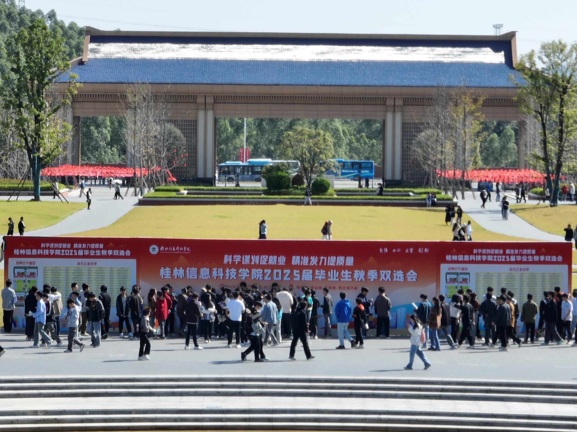 10 月 23 日上午,阳光倾洒在校园中轴线的“信科之眼”,两侧教学楼环廊热闹非凡,学校“百企进校园”2025 届毕业生就业双选会在此成功举办。