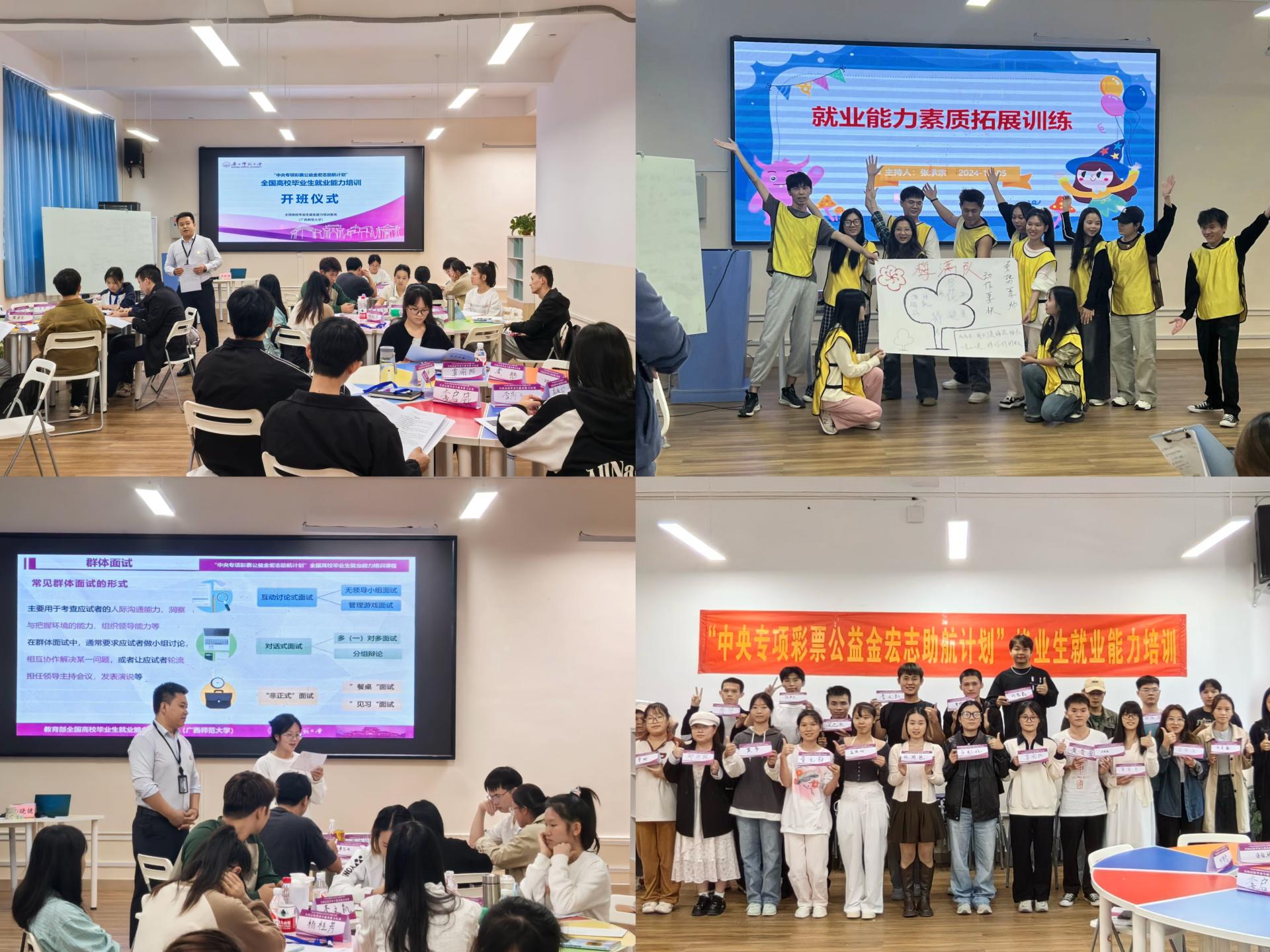 2024年11月1日,由广西师范大学基地组织的2024年“中央专项彩票公益金宏志助航计划”高校毕业生就业能力培训在我校开展,学校就业指导服务中心主任李晓健主持开班仪式,我校2025届毕业生40余人参加了本次活动。