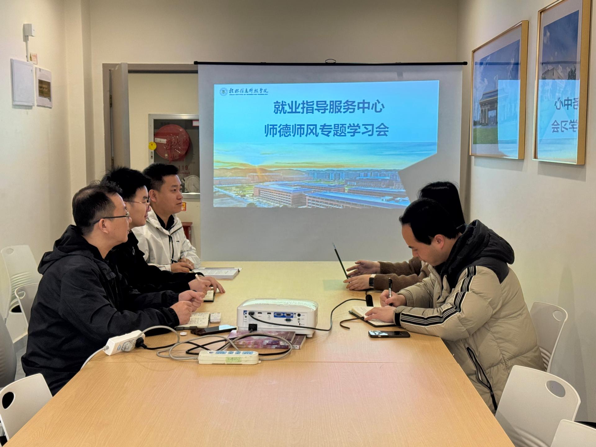 为深入贯彻落实《中共中央国务院关于弘扬教育家精神加强新时代高素质专业化教师队伍建设的意见》和《新时代高校教师职业行为十项准则》等文件精神,进一步加强师德师风建设,提升就业指导服务水平,就业指导服务中心于3月13日上午在一站式服务中心多功能厅组织开展了师德师风专题学习活动,本次学习活动由就业指导服务中心主任李晓健主持,部门全体教职工参加学习。