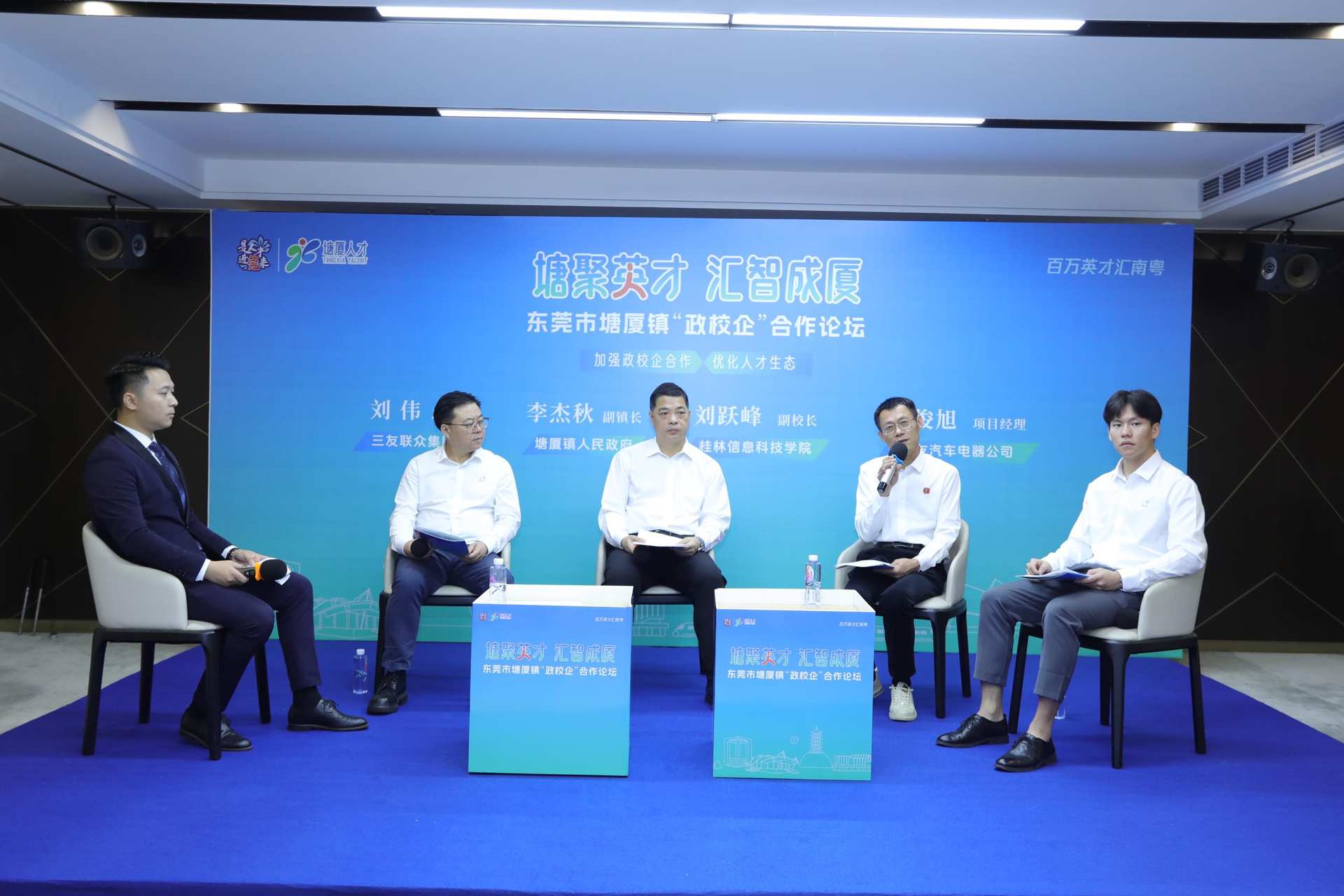 近日,我校副校长刘跃峰带队赴广东省东莞市塘厦镇参加“塘聚英才汇智成厦”人才品牌启动仪式暨政校企合作论坛并实地考察东莞星辰互动电子科技有限公司。活动期间,塘厦镇组织专场招聘会,吸引冠佳科技、三友联众等20余家优质企业参与,我校师生代表积极与企业对接交流,多名毕业生现场达成就业意向。刘跃峰副校长在论坛发言中强调,学校将持续深化产教融合,推动人才培养与产业需求精准对接。