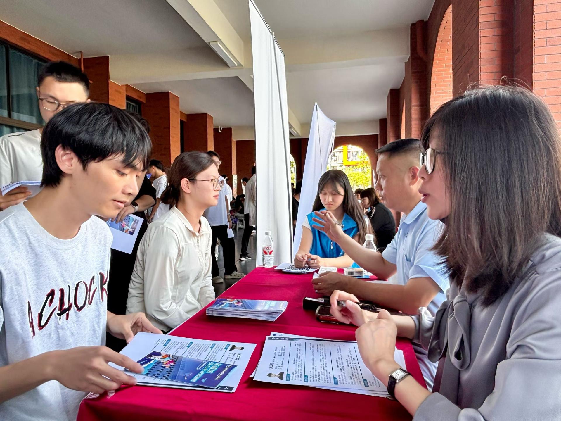 10月17日,我校2026届毕业生秋季第二场就业双选会在敦明楼一楼连廊成功举行。本次活动聚焦智能装备制造、新型材料、电子信息等前沿产业,吸引了来自肇庆、深圳的30余家上市公司和标杆企业参会,提供优质岗位1000余个,近2000名毕业生踊跃参与,现场人头攒动,气氛热烈。