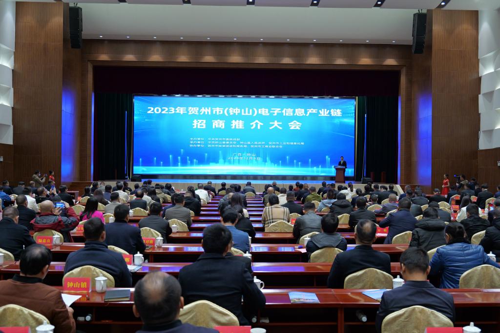 12月4日,2023年贺州市(钟山)电子信息产业链招商推介大会盛大举行。学校校长梁丁丁受邀参与了此次大会。校企合作处相关负责同志陪同参会。本次推介大会由钟山县委副书记、县长程钊主持。