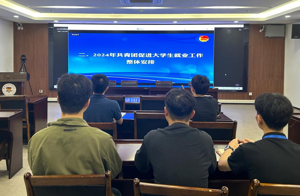 4月18日下午三时,我校团委于知行楼813会议室组织收看“共青团促进大学生就业行动全团部署暨业务培训会”线上直播。校、院二级团委负责同志参加了本次会议。