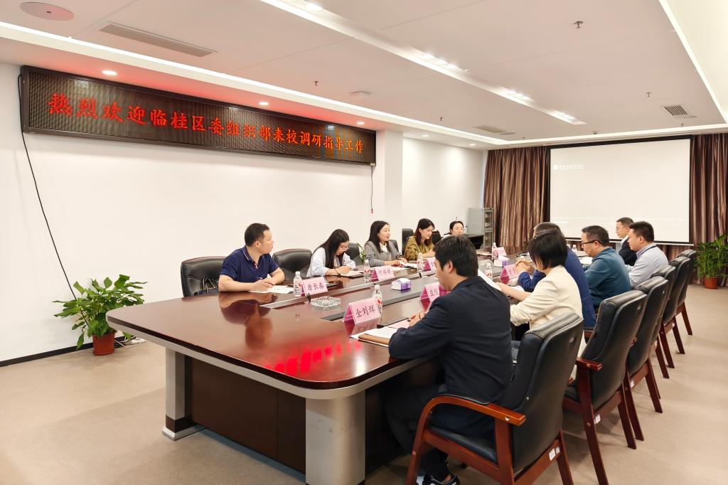 5月6日下午,中共桂林市临桂区委组织部贲文勤副部长一行到我校开展调研,学校党委书记甘勇、党委副书记李飞及相关部门负责人参加了调研座谈会。座谈会由李飞副书记主持。