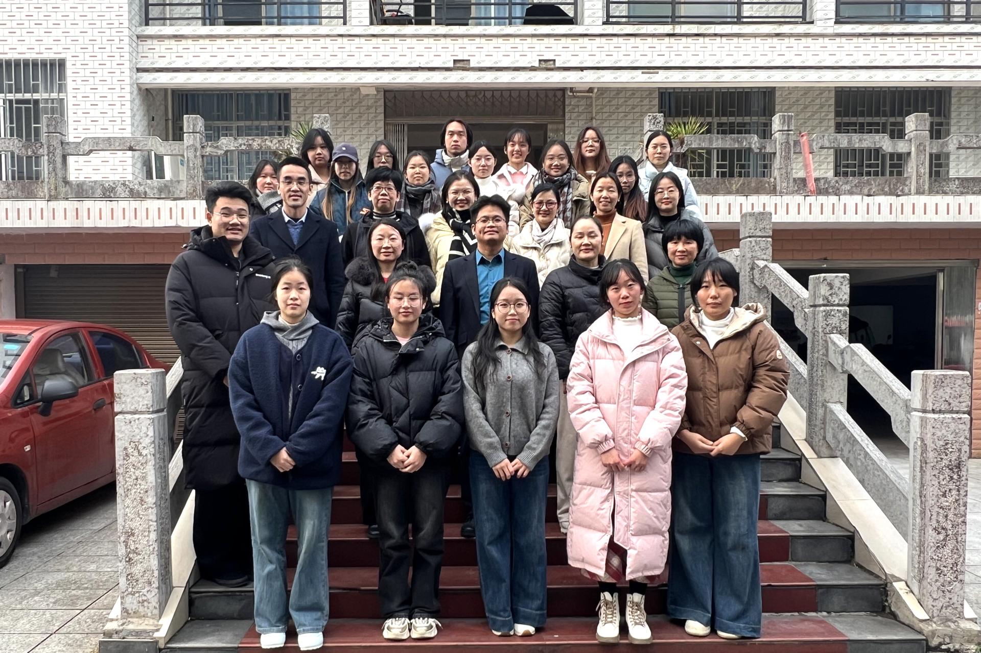 为提升英语专业学生教学实践能力与职业素养,增强学院人才培养与社会需求的契合度,12月13日,外贸与外语学院副院长赖安率英语专业教研室教师代表、2022级英语专业学生代表一行20人到灵川县第四中学交流。灵川县第四中学校长秦利明、教务处主任苏建芳等人热烈欢迎我院师生的到来。